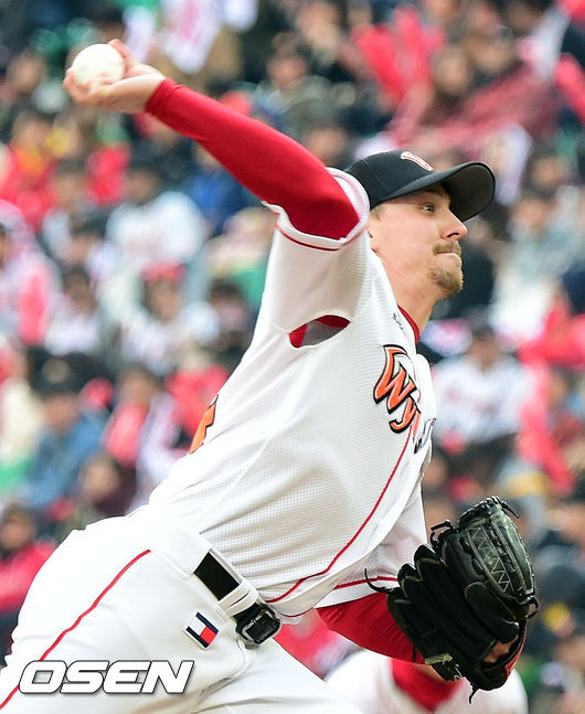 1회초 SK 선발투수 울프가 역투하고 있다.