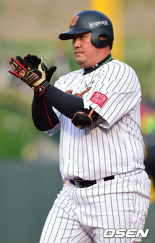 5일 오후 울산 문수야구장에서 열린 '2014 한국야쿠르트 세븐 프로야구' 롯데 자이언츠와 삼성 라이온즈의 경기, 1회말 무사 주자 만루 롯데 최준석이 초구를 노려 좌익수 왼쪽 2타점 적시타를 날리고 있다.