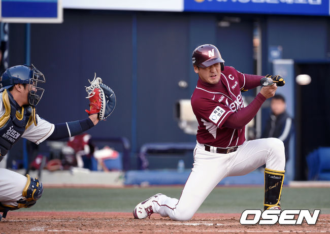 5일 오후 창원시 마산구장에서 열린 '2014 한국야쿠르트 세븐 프로야구' NC 다이노스와 넥센 히어로즈 경기,3회초 무사 2루 이택근 보내기번트를 성공시키고 있다.