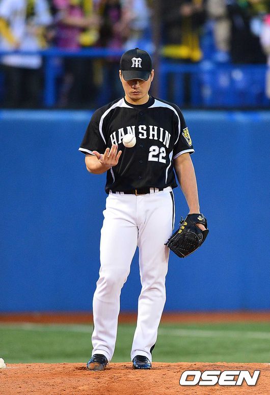 9회초 한신 공격 2사 1, 3루 상황 후지이 타석 때 오승환이 외야 불펜에서 몸을 풀며 공을 바라보고 있다./dreamer@osen.co.kr