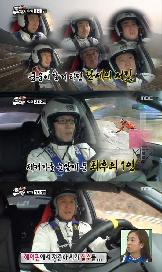 줄곧 유재석에 앞서 달려가던 정준하는 위기를 맞았다. 헤어핀 코스에서 정준하가 뒤차를 의식하느라 코스를 이탈하는 실수를 저지른 것. 유재석은 이런 호기를 놓치지 않았고 정준하를 추월해 달려갔다.