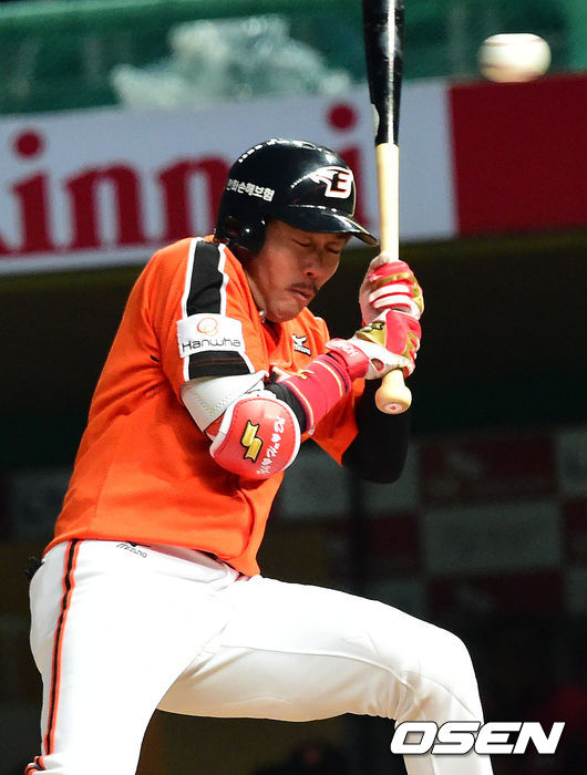 7회 초 한화 이용규가 SK 투수 진해수의 몸쪽 공에 깜짝 놀라고 있다.