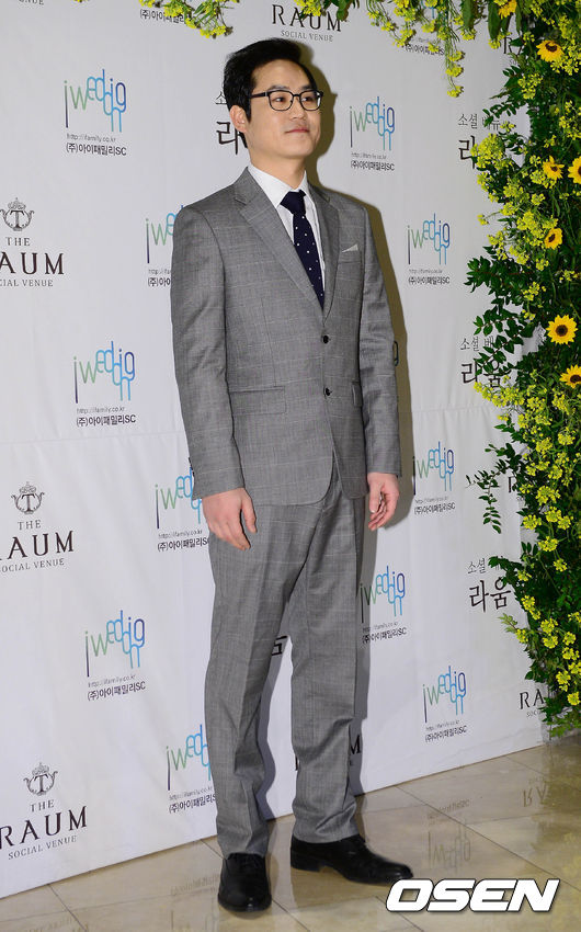 5일 오후 서울 역삼동 라움에서 열린 정겨운의 결혼식에 참석한 김성균이 포토타임을 갖고 있다.