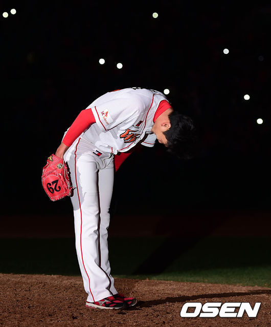 제시카의 'Goodbye'가 문학구장에 흘려퍼지는 가운데, 박 감독은 경기장을 한 바퀴 돌며 팬들에게 손을 흔들었다. 그리고 선수단과도 일일이 악수를 나눴다. 박 감독의 앞길을 축복하는 화려한 불꽃놀이와 함께, SK의 26번은 이제 프로야구 역사에 길이 남을 전설이 됐다.