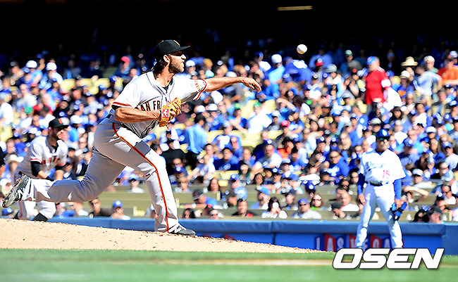 샌프란시스코 선발 범가너가 역투하고 있다.