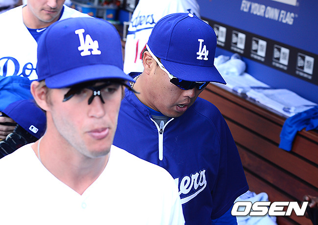경기후 다저스 커쇼, 류현진이 더그아웃을 나서고 있다./ jpnews@osen.co.kr