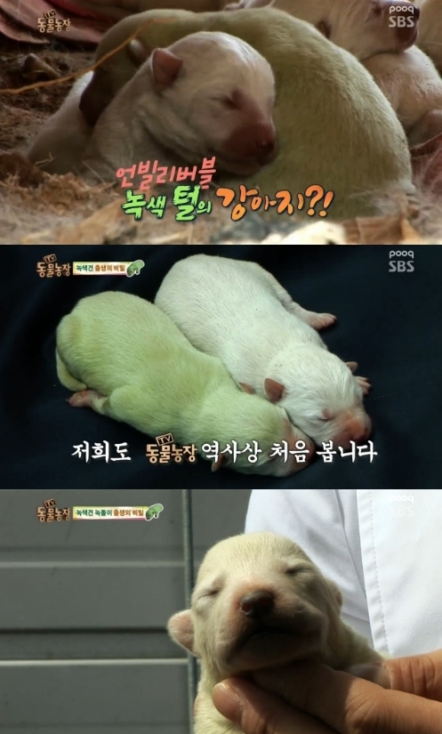 6일 방송된 SBS 시사교양 프로그램 'TV 동물농장'에서는 백구 가문에 태어난 녹색 강아지 녹돌이의 모습이 그려졌다.