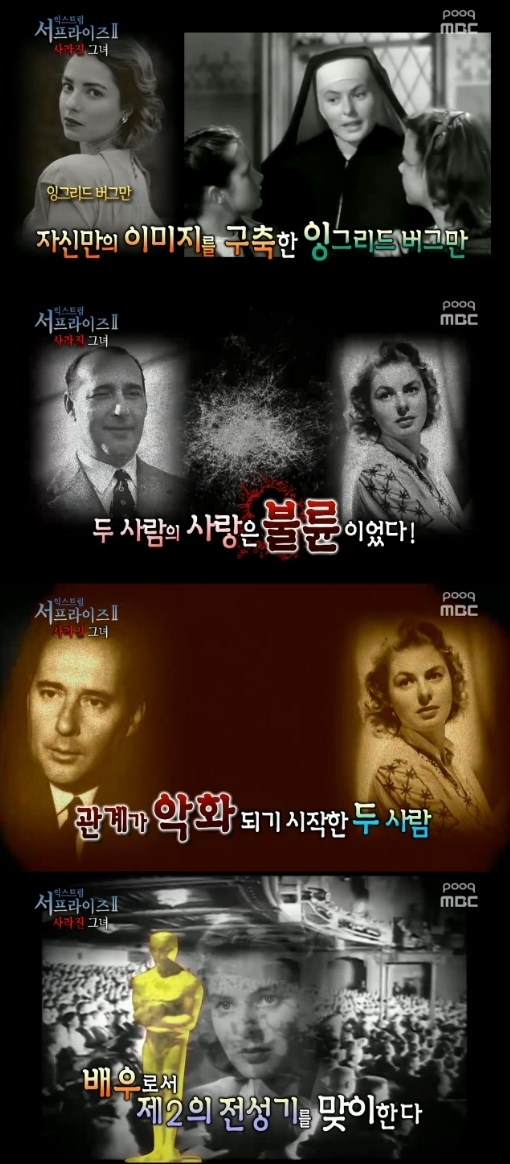 6일 방송된 MBC 예능프로그램 '서프라이즈'에서는 영화 '카사 블랑카', '누구를 위하여 종은 울리나', '잔다르크' 등의 영화에서 맹 활약 했던 잉그리드 버그만의 이야기가 그려졌다.