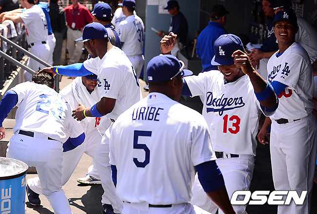 경기에 앞서 흘러 나오는 노래에 다저스 유리베, 라미레즈 등이 몸을 흔들며 춤을 추고 있다. / jpnews@osen.co.kr