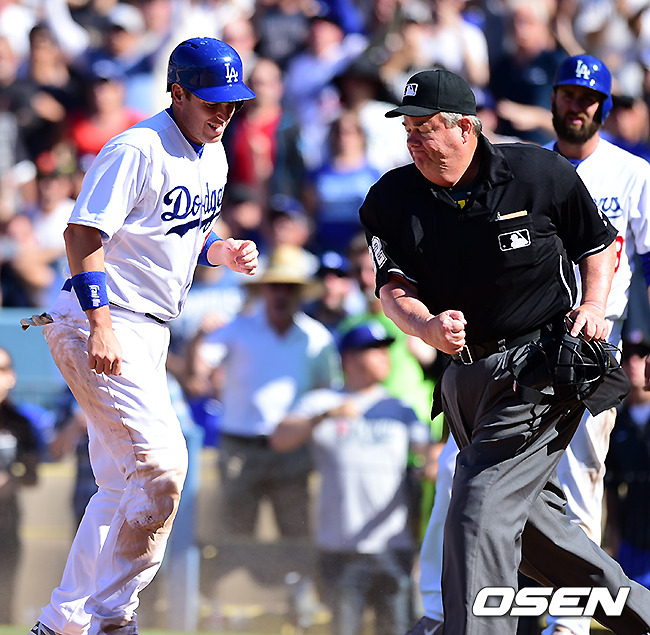 7회말 2사 만루에서 다저스 이디어의 적시 우전안타에 2루주자 엘리스가 홈에서 태그아웃당하고 있다. / jpnews@osen.co.kr