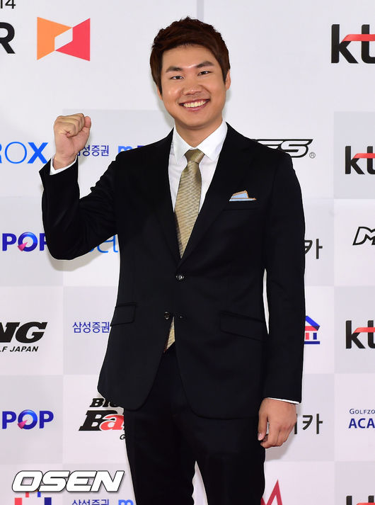 6일 오후 서울 강남구 골프존 서울본사 삼진홀에서 열린 2013-2014 GTOUR 위너스 어워드에서 김민수가 포토타임을 갖고 있다.