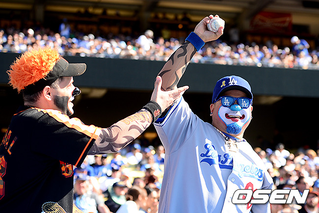 샌프란시스코, 다저스 팬이 파울볼에 열광하고 있다. / jpnews@osen.co.kr