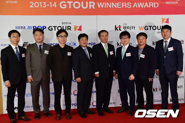 6일 오후 서울 강남구 골프존 서울본사 삼진홀에서 열린 2013-2014 GTOUR 위너스 어워드에서 관계자들이 기념촬영을 하고 있다.