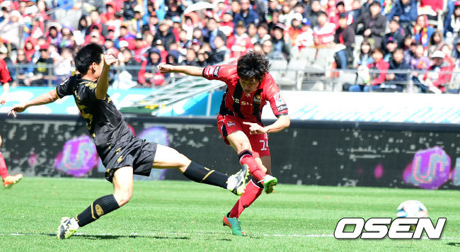 6일서울월드컵경기장에서 벌어진 FC 서울과 전북 현대의 경기 전반 윤일록이 동점골을 넣고 있다.