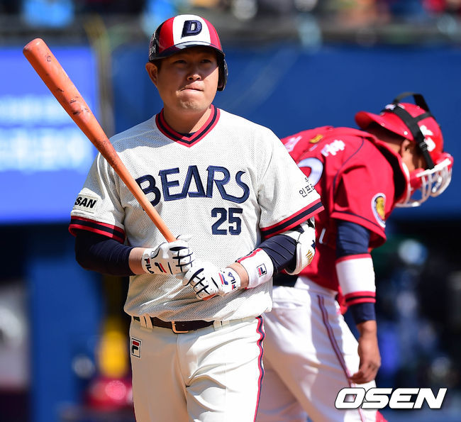 6일 오후 서울 잠실구장에서 열린 '2014 한국야쿠르트 세븐 프로야구' 두산 베어스와 KIA 타이거즈의 경기 2회말 1사 양의지가 삼진을 당하고 아쉬워하고 있다.