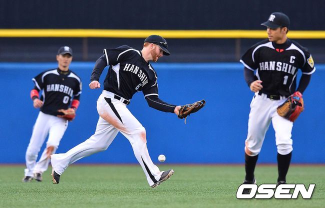 3회말 야쿠르트 공격 2사 주자없는 상황 아이카와의 플라이 타구를 한신 좌익수 맷 머튼이 놓치고 있다. 에러로 기록.