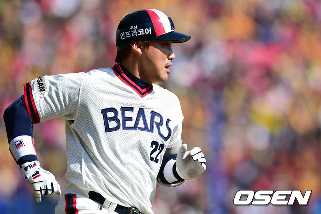 6일 오후 서울 잠실구장에서 열린 '2014 한국야쿠르트 세븐 프로야구' 두산 베어스와 KIA 타이거즈의 경기 4회말 1사 2루 홍성흔이 1타점 적시타를 치고 달리고 있다.