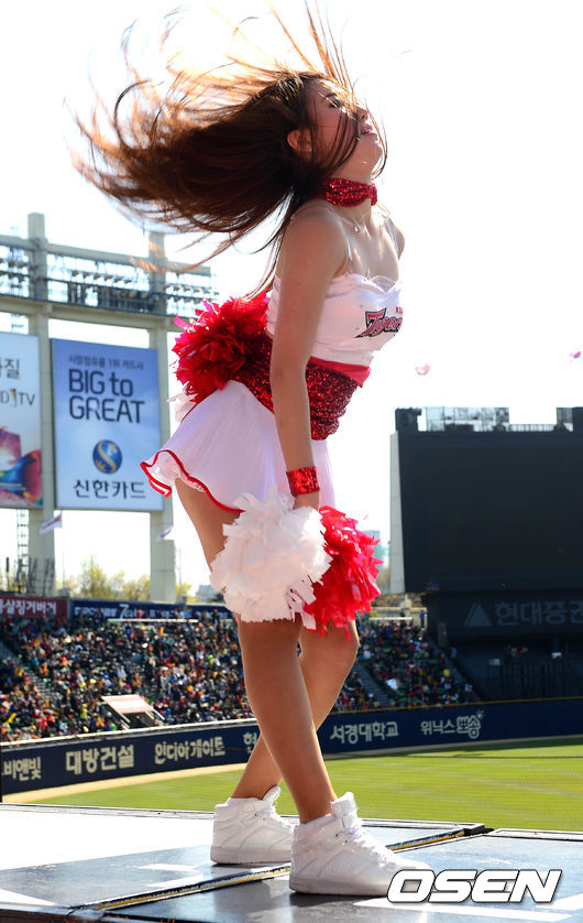6일 오후 서울 잠실구장에서 열린 '2014 한국야쿠르트 세븐 프로야구' 두산 베어스와 KIA 타이거즈의 경기, 치어리더들이 공연을 펼치고 있다.
