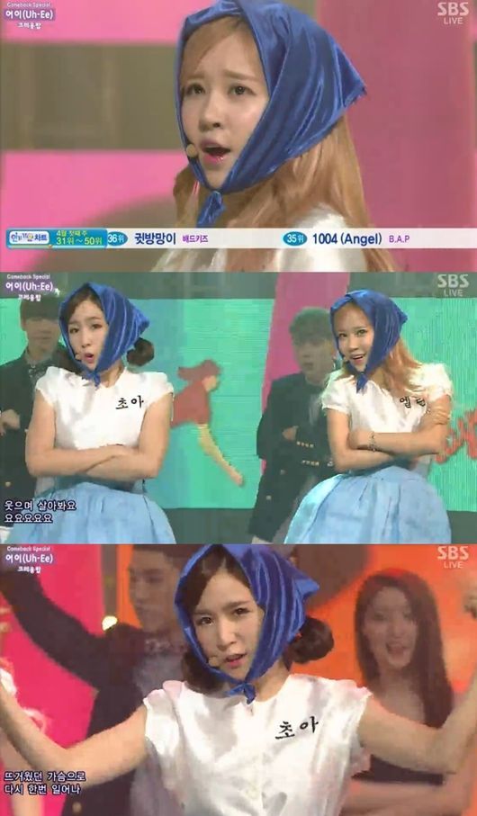 크레용팝은 16일 방송된 SBS 음악프로그램 '인기가요'에서 '어이'를 열창했다.