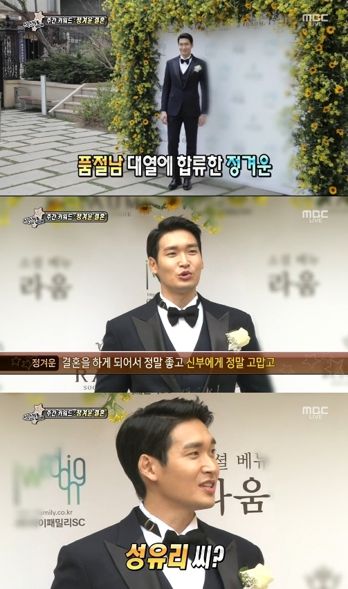 정겨운은 6일 오후 방송된 MBC 연예정보프로그램 '섹션TV 연예통신'에서 “나는 정말 행복한 남자인 거 같다. 결혼하게 돼서 정말 좋고 신부한테 고맙다”고 말했다.