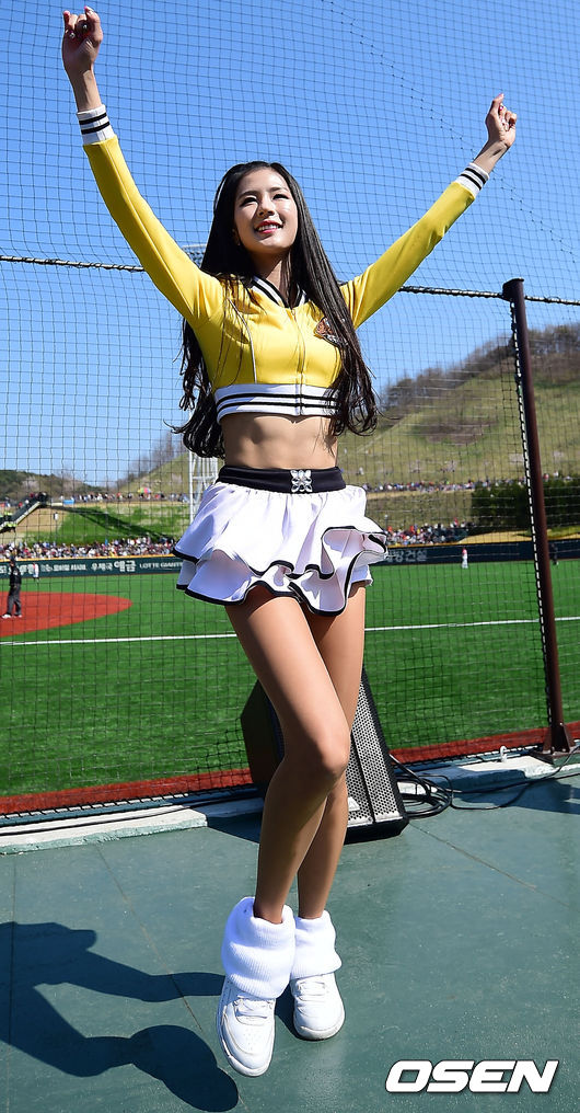 6일 오후 울산 문수야구장에서 열린 '2014 한국야쿠르트 세븐 프로야구' 롯데 자이언츠와 삼성 라이온즈의 경기, 롯데 치어리더 박기량이 무대 위에서 공연을 펼치고 있다.