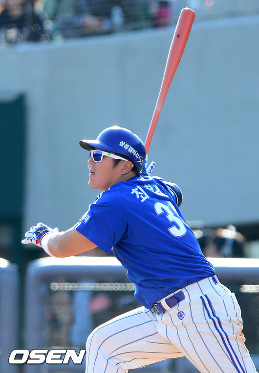 6일 오후 울산 문수야구장에서 열린 '2014 한국야쿠르트 세븐 프로야구' 롯데 자이언츠와 삼성 라이온즈의 경기, 8회초 무사 주자 1루 삼성 최형우가 좌중월 투런 홈런을 날리고 있다.