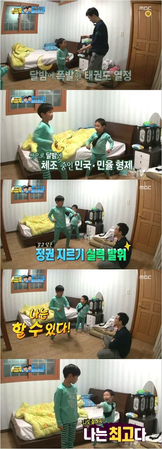 김민국과 김민율 형제가 달밤에 태권도를 하며 용감함을 뽐냈다.