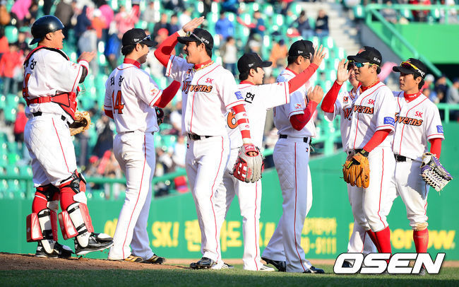 주말 3연전을 모두 잡은 SK는 4연승을 내달렸다. 6승2패를 기록한 SK는 이날 울산에서 삼성에 진 롯데를 밀어내고 단독 1위 등극의 기쁨을 맛봤다.