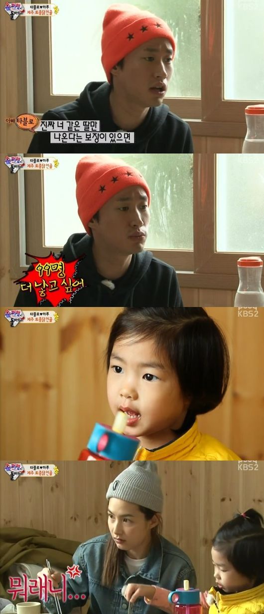 6일 방송된 KBS 2TV 예능프로그램 '해피선데이 슈퍼맨이 돌아왔다'에서는 제주도로 여행을 떠난 추성훈, 이휘재, 장현성, 타블로 가족의 모습이 그려졌다.