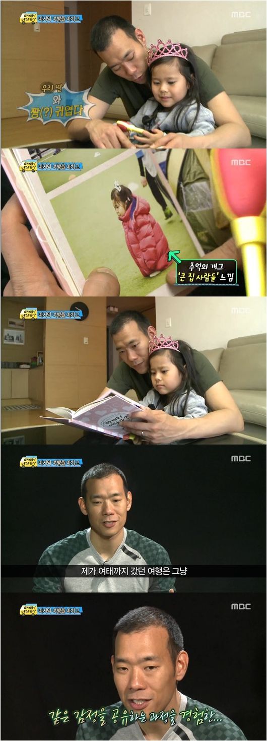 그는 딸 규원과 ‘아빠 어디가’ 추억이 담긴 사진을 본 후 추억에 잠겼다. 김진표는 “이 프로그램에 출연하면서 내가 그동안 갔던 여행은 여행이 아니었다는 것을 알게 됐다”고 말했다.