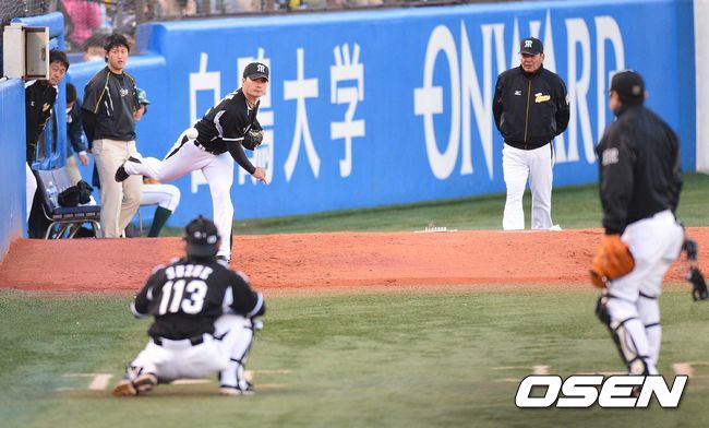 한신 마무리투수 오승환이 팀이 7점차로 리드하고 있는 9회말 등판을 앞두고 외야 불펜에서 몸을 풀고 있다./dreamer@osen.co.kr