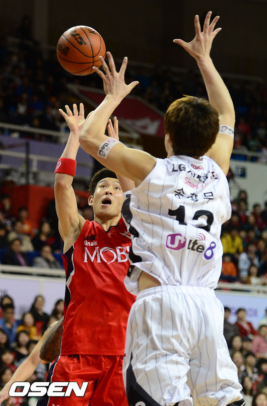 6일 오후 울산광역시 중구 동천체육관 열린 'KB 국민카드 2013-2014 프로농구' 울산 모비스와-창원 LG의 챔피언결정 4차전, 2쿼터 모비스 양동근이 점프 슛을 날리고 있다.