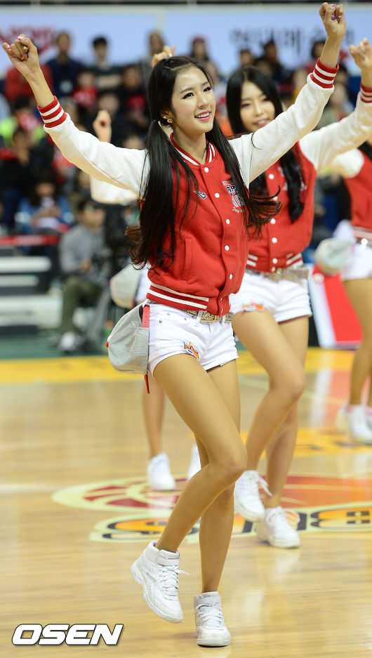 6일 오후 울산광역시 중구 동천체육관 열린 'KB 국민카드 2013-2014 프로농구' 울산 모비스와-창원 LG의 챔피언결정 4차전,  모비스 치어리더 박기량이 코트 위에서 화려한 공연을 펼치고 있다.