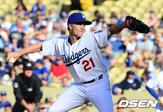 1회초 다저스 선발 그레인키가 역투하고 있다.