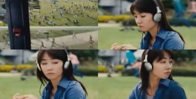 헤드폰을 낀 채 음악을 듣는 여인의 모습과 괴물의 생김새가 봉준호 감독의 '괴물' 속 그것과 매우 흡사해 눈길을 끈다.