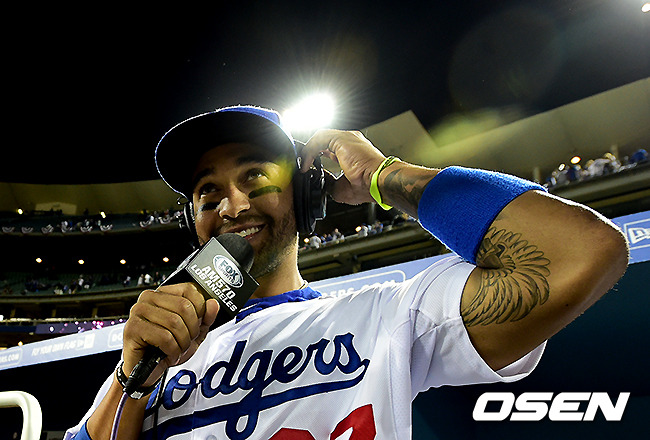 경기후 다저스 멧 켐프가 히어로 인터뷰를 하고 있다. / jpnews@osen.co.kr