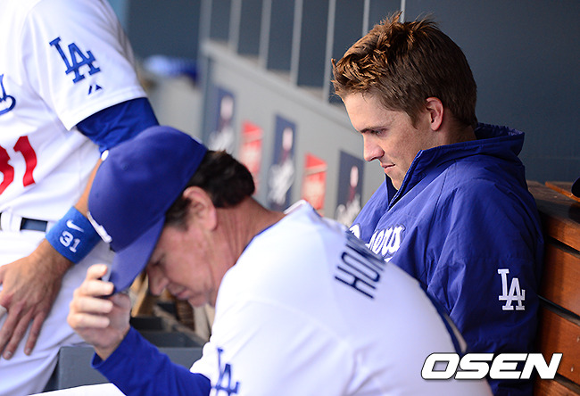 4회초 수비를 마치고 다저스 그레인키가 더그아웃에서 생각에 잠겨 있다. / jpnews@osen.co.kr