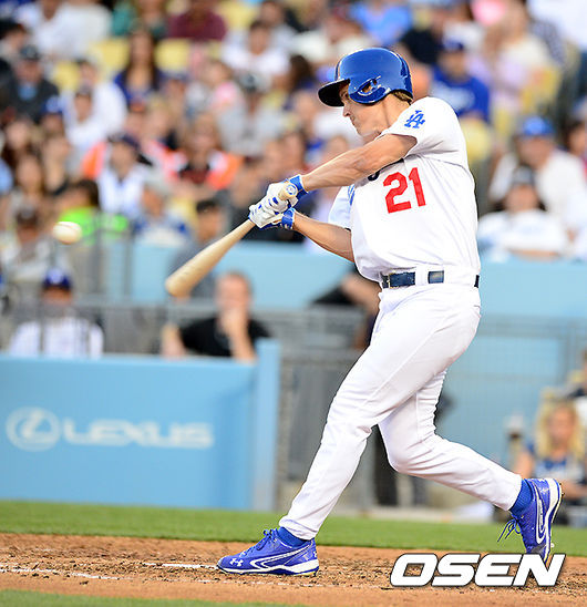 5회말 1사에서 다저스 그레인키가 좌중간 2루타를 날리고 있다. / jpnews@osen.co.kr