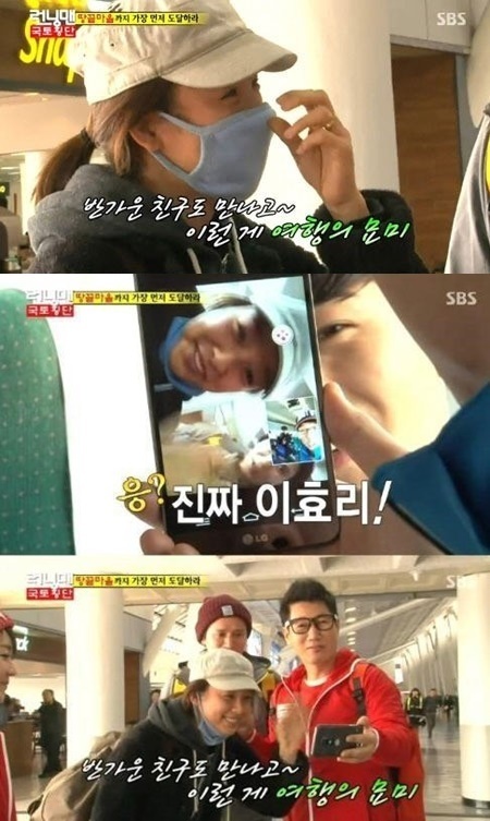 이날 방송에서 김포공항을 찾은 김종국-김민종, 지석진-김정난 팀은 이곳에서 톱스타 중 한 명을 우연히 만나게 됐다. 남편 이상순과 제주도에서 살고 있는 이효리가 서울에 들렀다가 다시 집으로 가기 위해 공항을 찾았던 것.