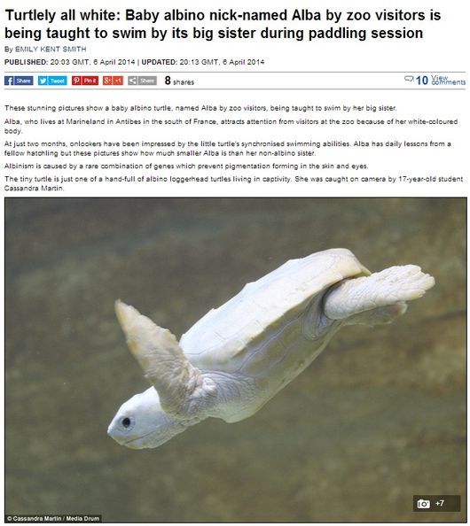 생후 2개월 된 희귀 거북이의 이름은 '알바(Alba)'이며 태어난지 2개월만에 해당 동물원의 스타로 등극했다고.