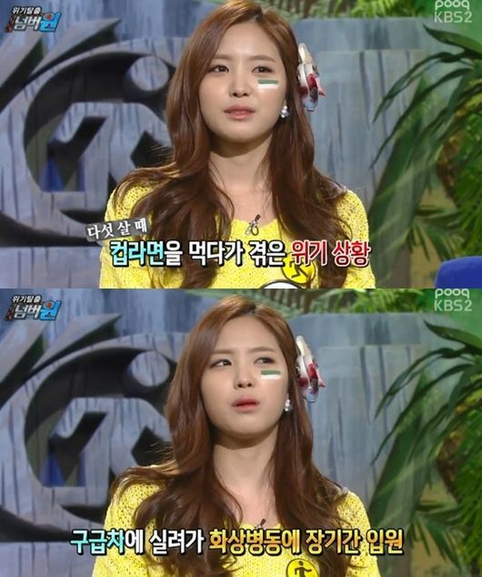 손나은은 7일 방송된 KBS 2TV '위기탈출 넘버원'에 출연해 위급했던 상황을 털어놨다.