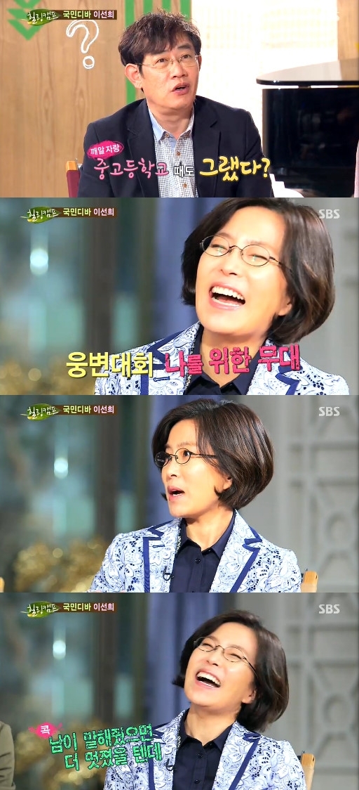 이날 이선희는 여성 팬이 많은 ‘언니 부대 창시자’라는 표현에 흡족한 미소를 지었다. 이어 “학창시절에도 그랬다. 사생대회, 체육대회가 있으면 단장은 제가 무조건 맡았고. 웅변대회는 저를 위한 무대였다”고 깨알자랑을 시작해 모두를 폭소케했다.