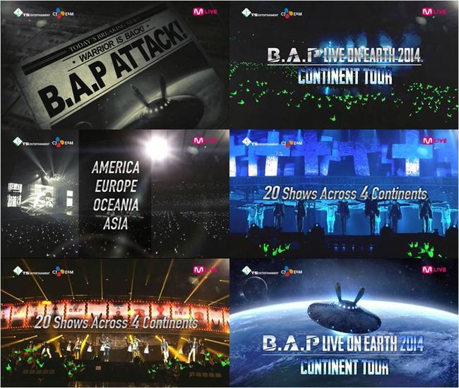 보이그룹 B.A.P가 4개 대륙, 총 19회 공연에 이르는 투어 ‘B.A.P 라이브 온 어쓰 2014 컨티넨트 투어(LIVE ON EARTH 2014 CONTINENT TOUR)’의 전체 일정을 8일 공개했다.
