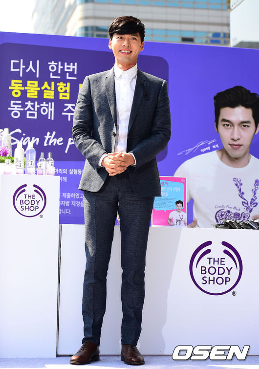 8일 오전 서울 광화문 더바디샵에서 진행된 '동물실험반대 서명 캠페인' 행사에 참석한 현빈이 포토타임을 갖고 있다.