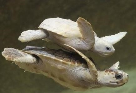 새하얀 희귀 알비노 거북의 모습이 인기를 얻고 있다.