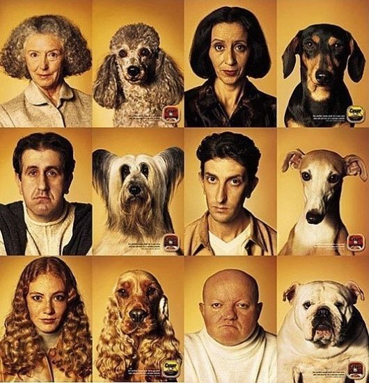 이 사진에는 주인과 매우 닮은 외모를 가진 애완견들의 사진이 주인의 사진과 나란히 위치했다. 이 사진에서 주인과 애완견은 헤어스타일과 표정이 모두 닮은 모습을 보여주고 있다. 이는 한 애완견 간식 제품의 광고로 알려지기도 했다.
