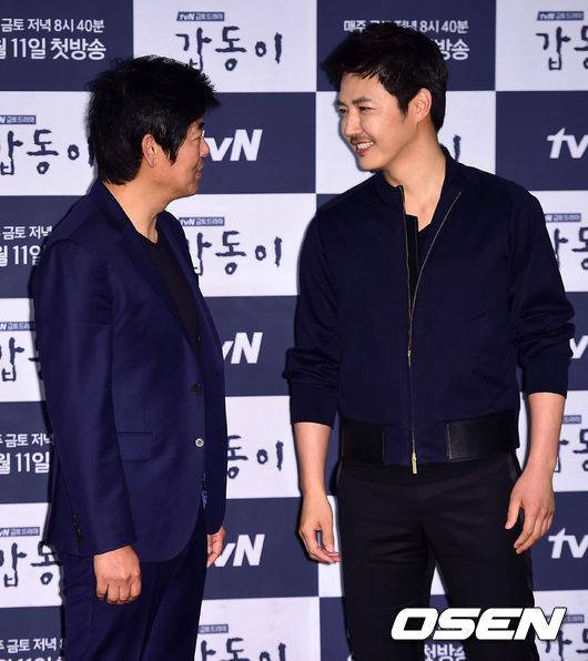배우 성동일과 윤상현이 포토타임을 갖고 있다.