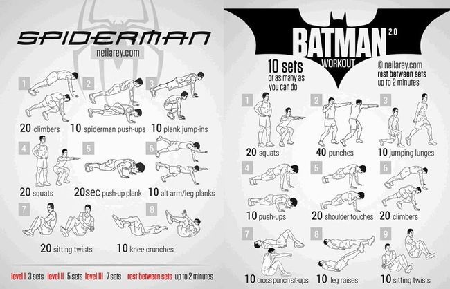 아이언맨의 운동법 등 슈퍼 히어로 운동법이 화제가 된 이유는 딱딱하고 재미없는 피트니스 운동을 재미있게 할 수 있다는 장점 때문이다. 자기가 좋아하는 슈퍼 히어로를 흉내내며, 슈퍼 히어로처럼 되고 싶다는 마음으로 운동을 한다면 노력도 효과도 좋아질 것.