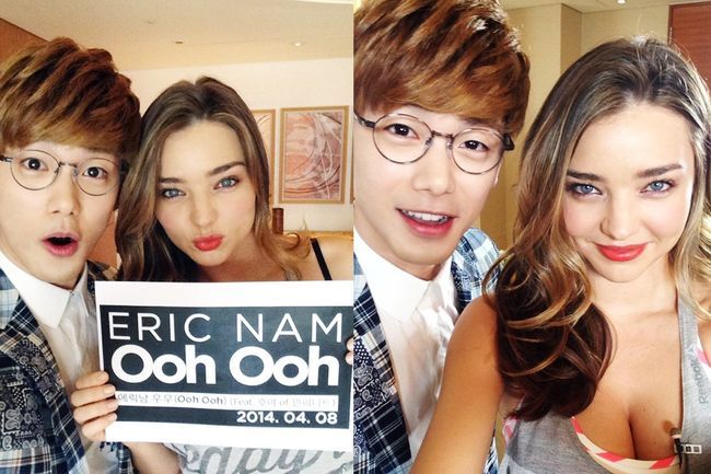 가수 에릭남이 세계적인 톱모델 미란다 커와의 친분 셀카를 공개했다.