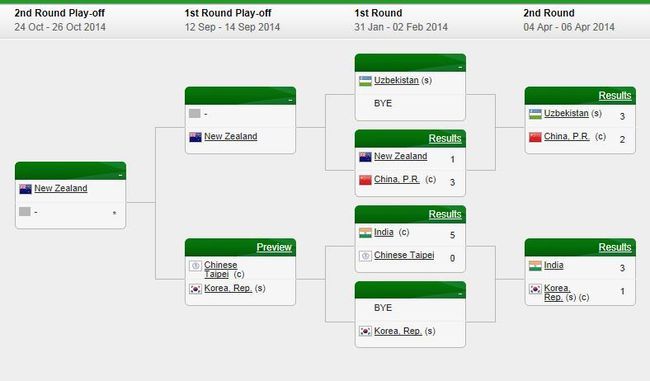 당초 한국은 1회전을 부전승으로 통과해 2회전에서 인도를 이길 경우 월드그룹 플레이오프에 나서고 패할 경우 1그룹에 잔류할 것이라는 예상과는 달리 대만과 아시아-오세아니아 1그룹 플레이오프를 치러 이겨야 1그룹에 잔류할 수 있는 것으로 알려졌다.